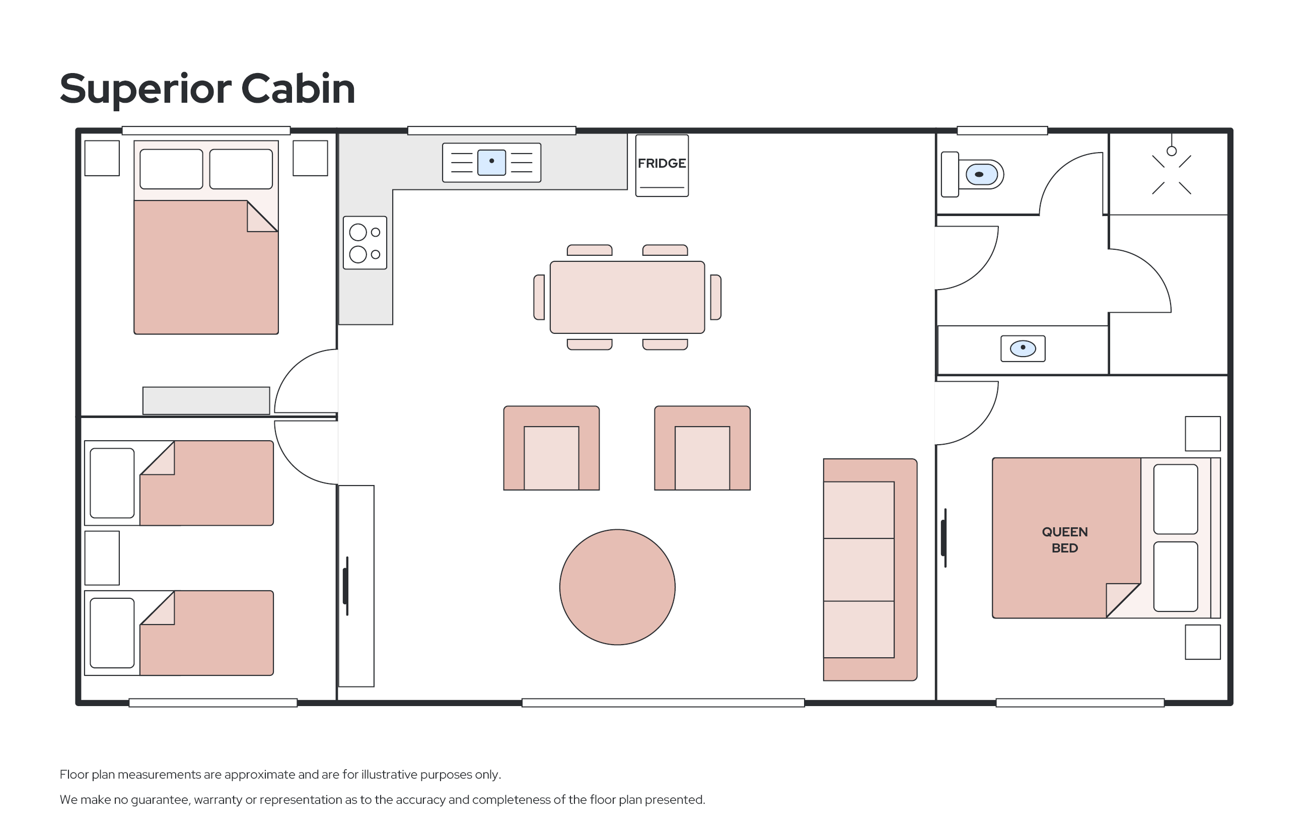 Sleeps 8 – Main bedroom with Queen bed and television, second bedroom with Queen bed, and third bedroom with two single beds. All beds have electric blankets